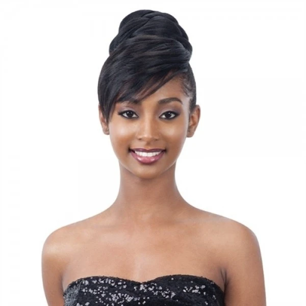 Type : chignon conique + frange à clips