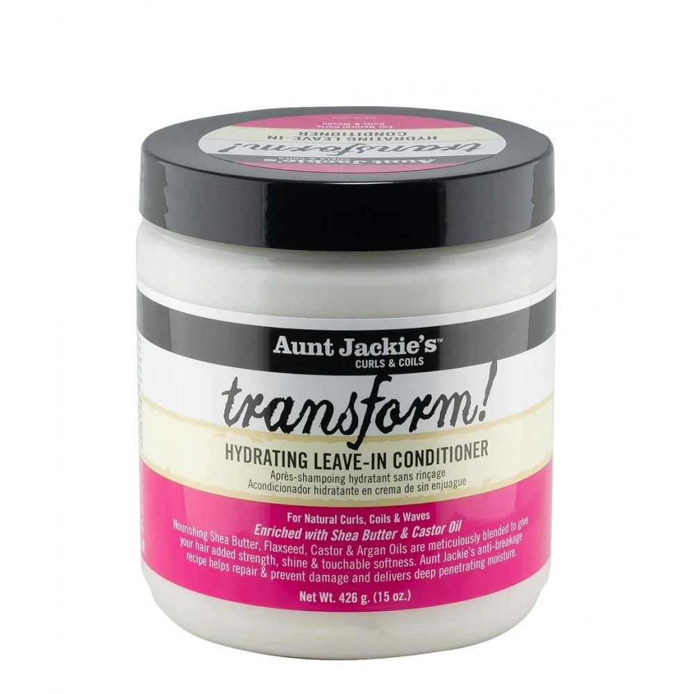 Le Leave-in Hydratant sans rinçage TRANSFORM! de la marque AUNT JACKIE’S propose une cure de jouvence dès la première utilisation. Spécialement conçu pour les cheveux bouclés et crépus, il apporte une douceur et un éclat incomparable tout rendant le coiffage simple et efficace.