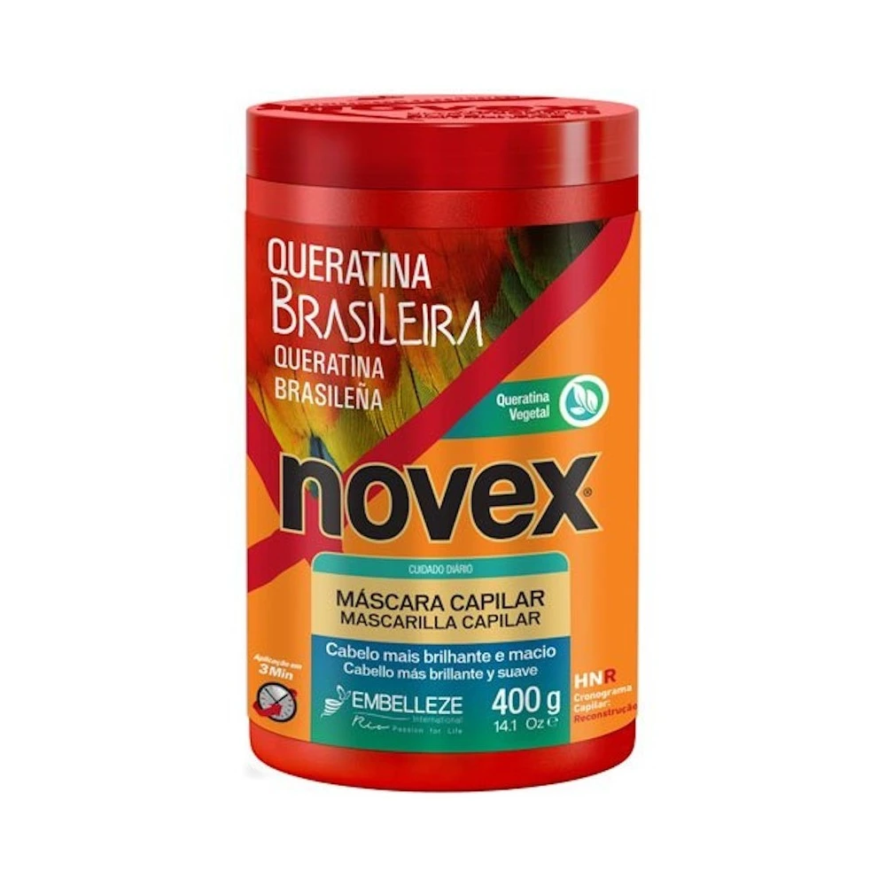 Le masque capillaire BRAZILIAN KERATIN de la marque NOVEX hydrate en profondeur la fibre capillaire. Il répare les cheveux endommagés par de nombreuses utilisations d’appareils chauffants et de traitements chimiques.