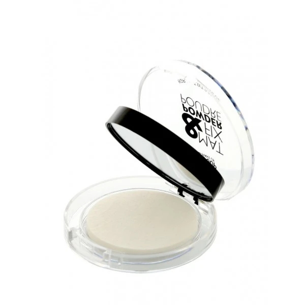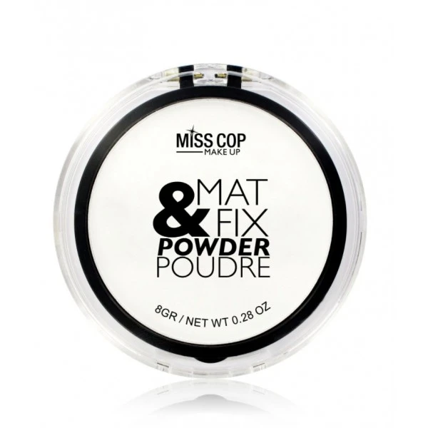 La poudre mat & fix de la marque MISS COP possède un miroir intégré et aide à éliminer les brillances du visage.