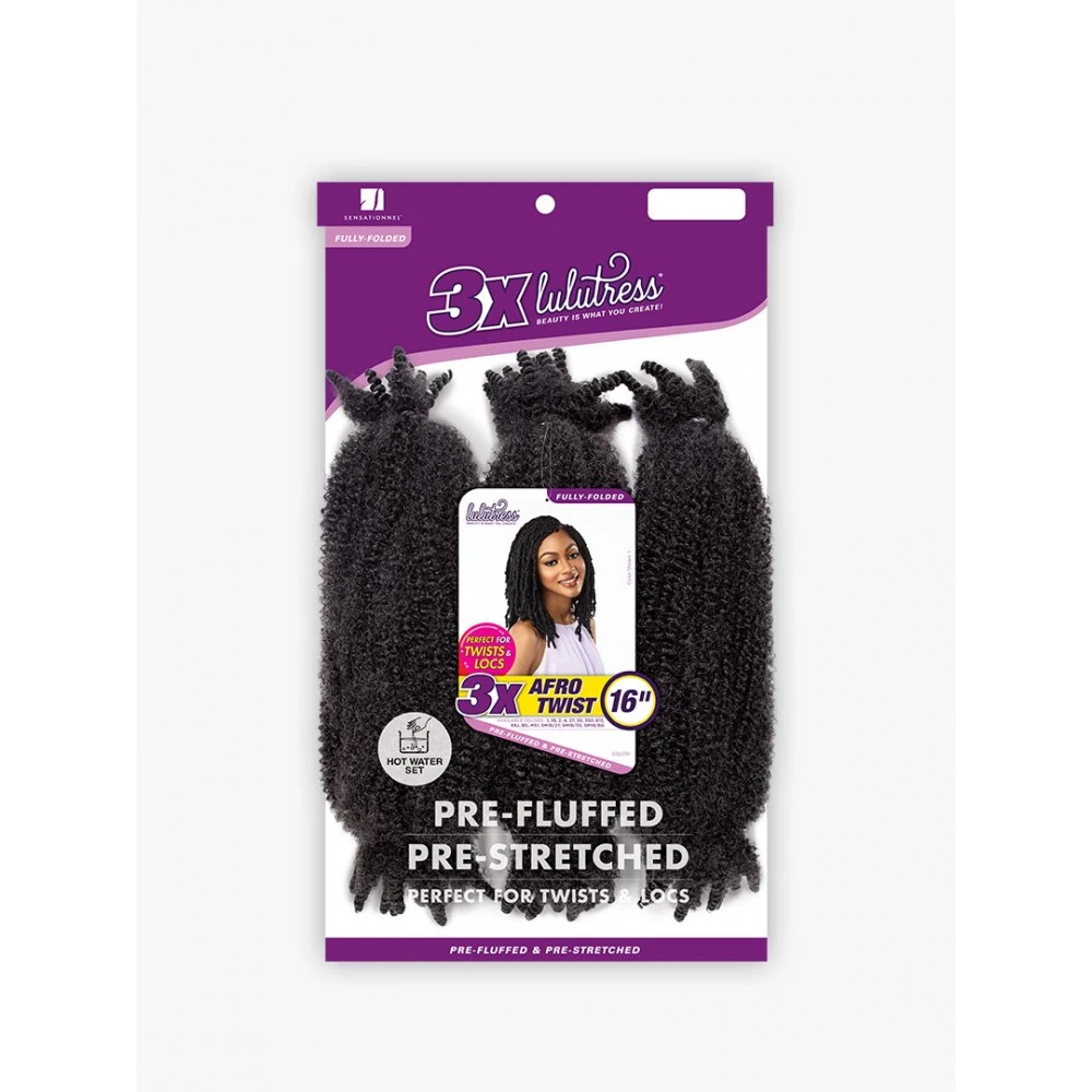 La natte 3X AFRO TWIST 16 » de la marque SENSATIONNEL (Lulutress) est conçue en cheveux synthétiques de haute qualité.