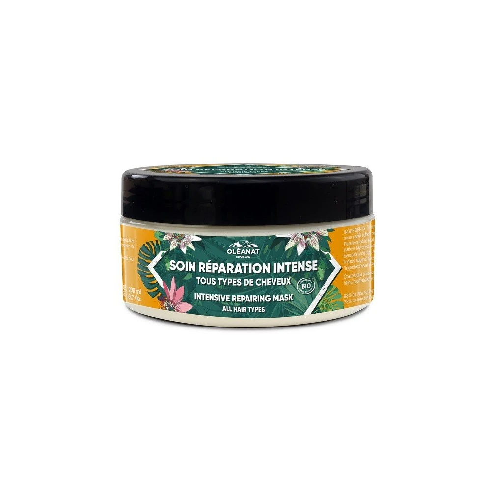 Le Soin réparation intense pour cheveux abimés BIO de la marque OLÉANA nourrit la kératine, répare et assouplit la fibre capillaire. Adapté pour tous les types de cheveux, la texture crémeuse et légère de ce masque capillaire réhydrate et répare le cuir chevelu en profondeur.