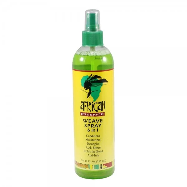 La formule du spray African Essence Weave Spray 6 en 1, revitalise et démêle les cheveux naturels, les extensions et mèches naturelles ou synthétiques.