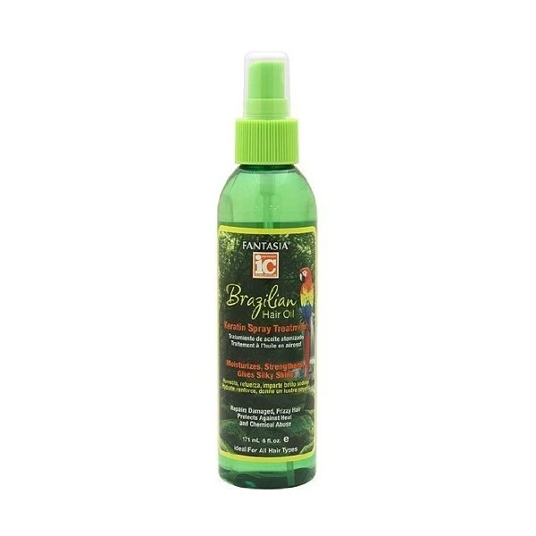Le traitement en spray à l’huile de kératine brazilian de la marque FANTASIA hydrate, renforce, donne un lustre soyeux et répare les cheveux crépus endommagés.